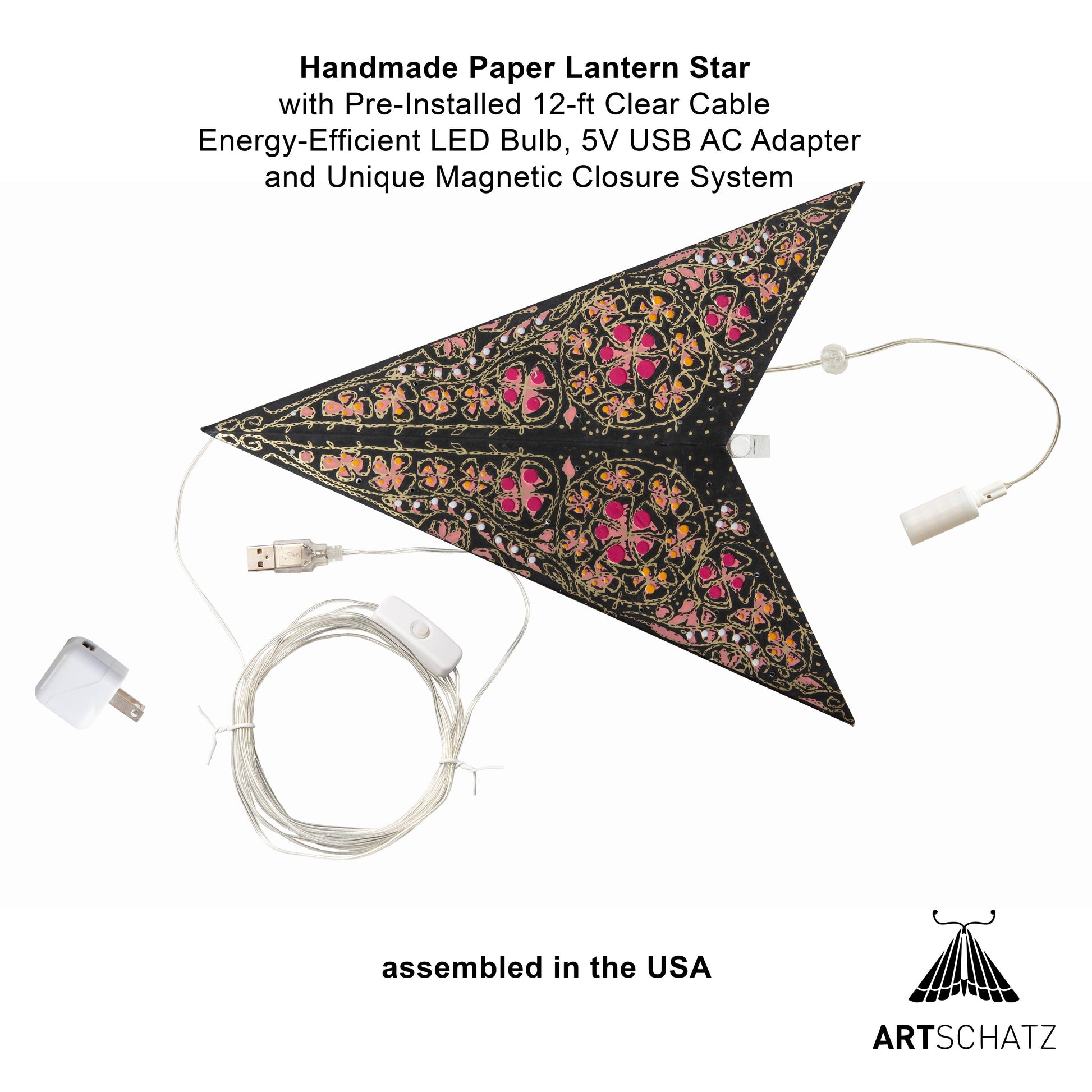 ✨ Hva gjør Artschatz-stjernene unike? Hver stjerne er håndlaget i India og montert i New York, med nøye kvalitetskontroll. I motsetning til vanlige papirstjerner henger Artschatz-stjernene perfekt symmetrisk med spissen opp – et tradisjonelt symbol på beskyttelse og lykke.