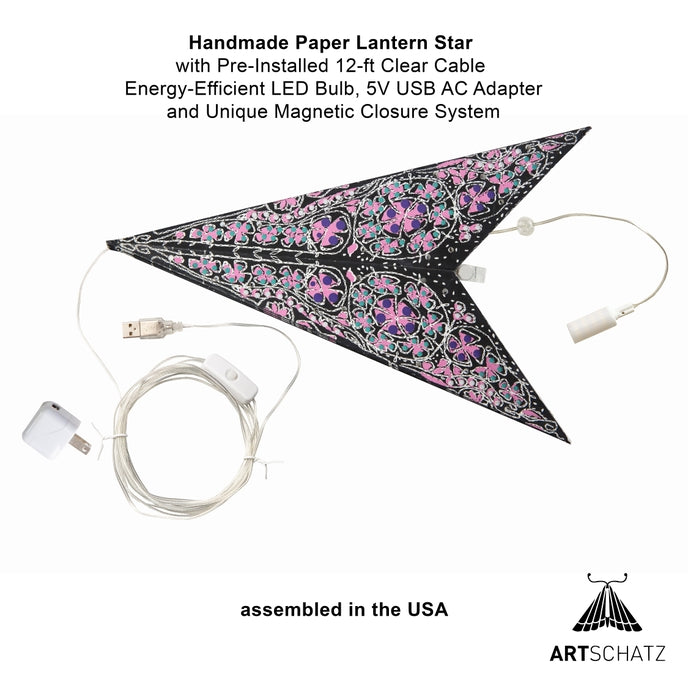 đ Artschatz Cathedral â 7-spisset Papirstjerne i Svart/Rosa med Fiolett/Turkis Inlay Et majestetisk lyspunkt med katedralens glĂžd