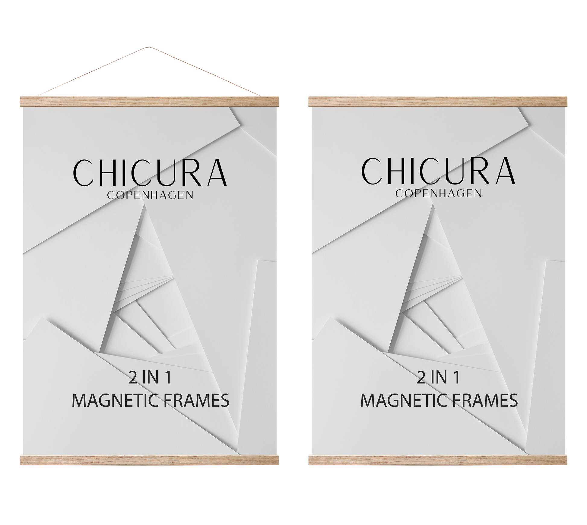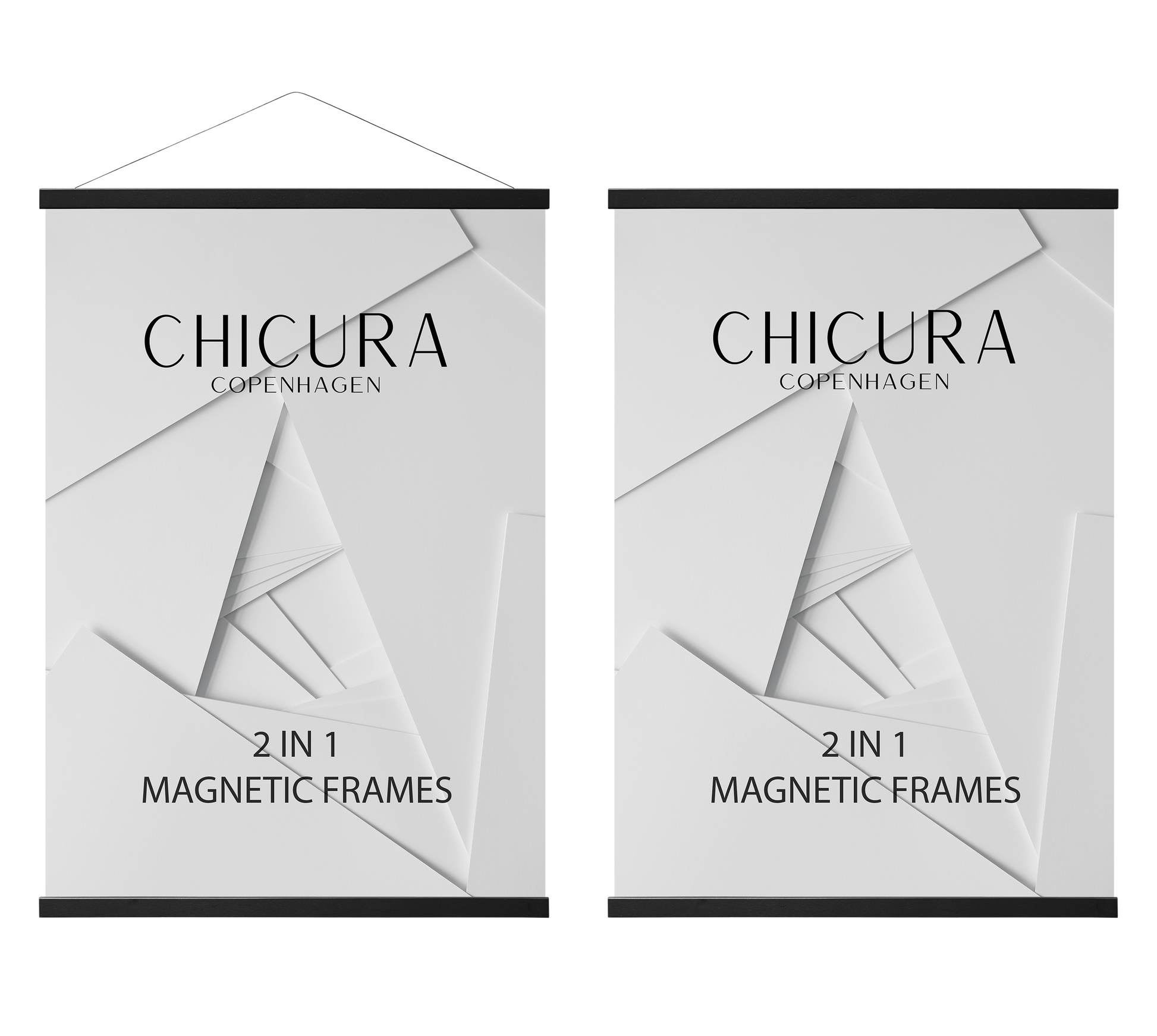 Heng plakaten enten i snoren, eller fjern snoren og fest den magnetiske rammen direkte på veggen.