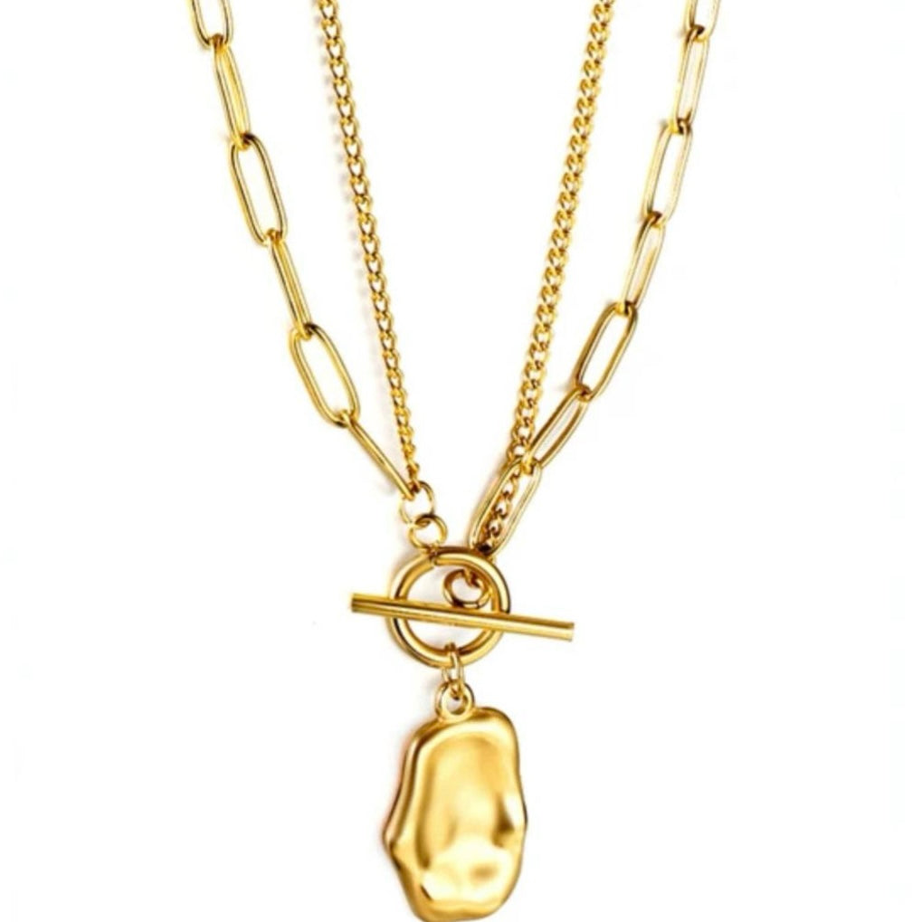 Inspirert av skjell fra Ibiza er denne enkle, klassiske dobbelkjeden med T-lås et gullglitrende blikkfang som løfter antrekket ditt 🌟 Laget i 18 karat gull, vanntett og festklar – du trenger ikke lenger ta av deg smykkene før du hopper i bassenget på ferie eller tar en dukkert i havet 🌊 Våre halskjeder, armbånd og øredobber er laget i sølv eller 18k gull med slitesterk vermeil-belegg, og selv om vi anbefaler å ta dem av når du kan, tåler de både saltvann, klor og svette på dansegulvet 💃💦 Rustfritt, glitrende og alltid klart for eventyr!