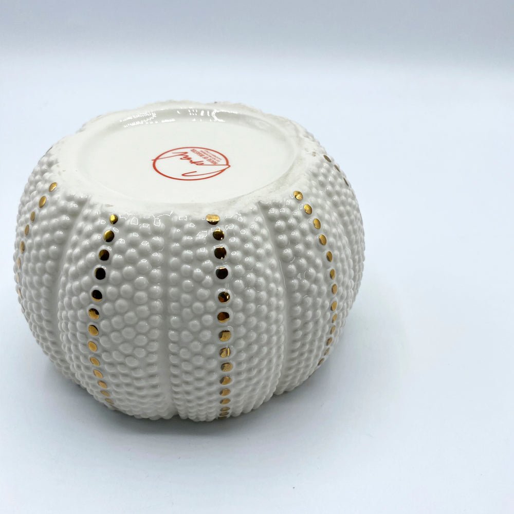 Denne vintage-inspirerte porselensskålen er formet som en snirklete skjell, og har en søt liten keramisk krabbe som passer på smykkene dine, såpene dine – eller snacksen, om du vil. Den er pyntet med vakre gullillustrasjoner som gir et snev av luksus til det maritime uttrykket.
