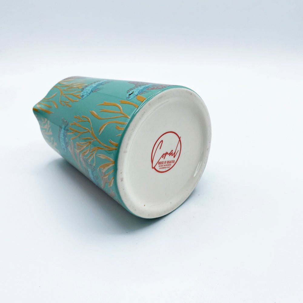 Denne dekorative kannen i porselen er som en liten dose havmagi til kjøkkenet ditt. Med en supersøt keramisk sjøhest som slynger seg rundt håndtaket, og et nydelig havlandskap over en myk turkis glasur, er den både praktisk og poetisk.