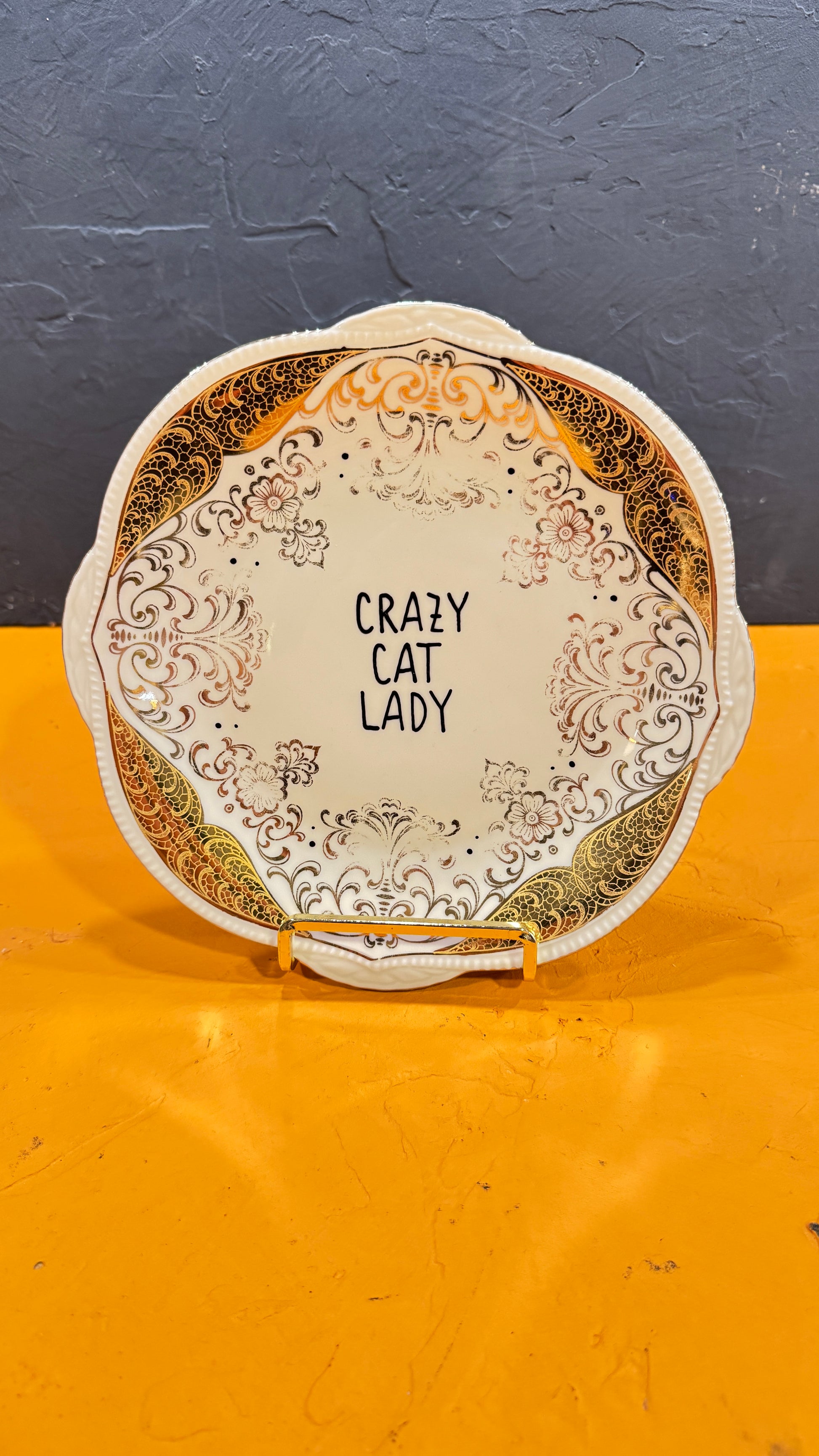 Tekst i porselensmaling, på retro tallerkener funnet på loppemarked i Europa.