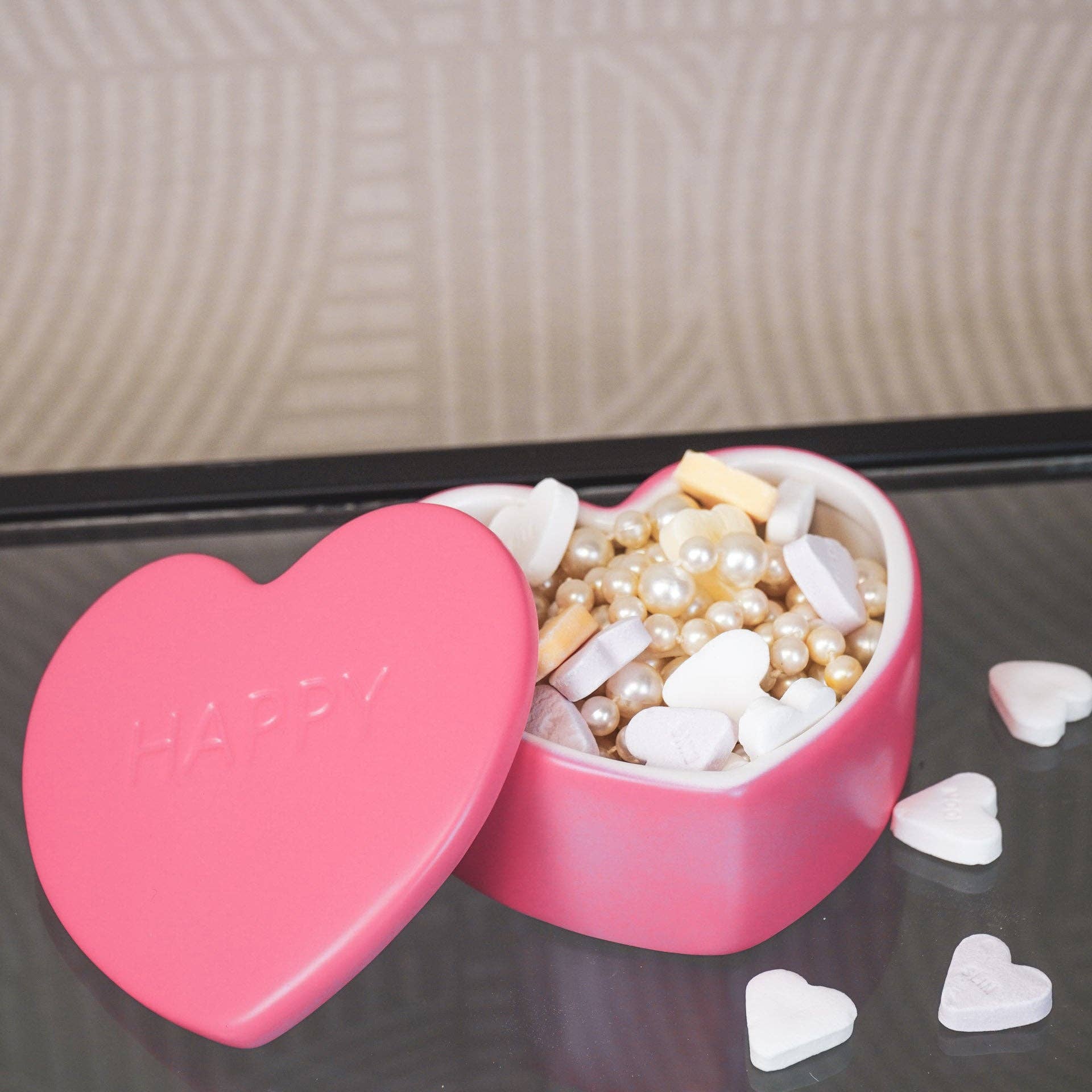 Stylingtips: Hvert hjørne trenger litt kjærlighet og humor. I tillegg til å se flott ut, vil denne hjertekrukken skjule nøklene dine eller andre ting inni.