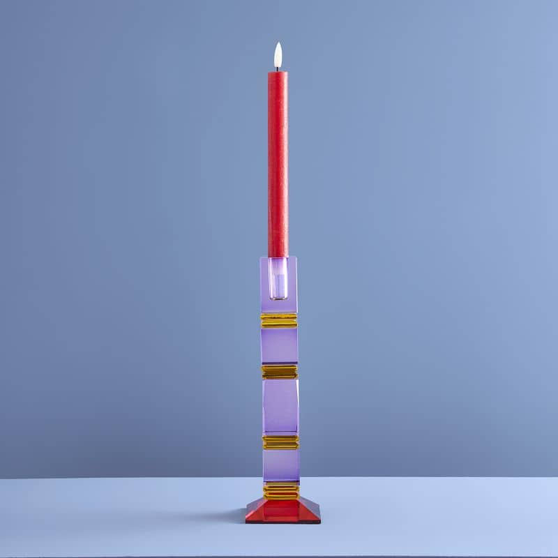 Fancy Crystal Candlestick Square er lysestaken som sier «jeg kom ikke hit for å være anonym». Den står der i lilla og rødt som en glamorøs diva i glass, 28 cm med ren «se‑på‑meg‑da»‑energi. Når du tenner et lys i den, får rommet umiddelbart mer stemning – som om hjemmet ditt plutselig har begynt å flørte litt med deg 😉✨