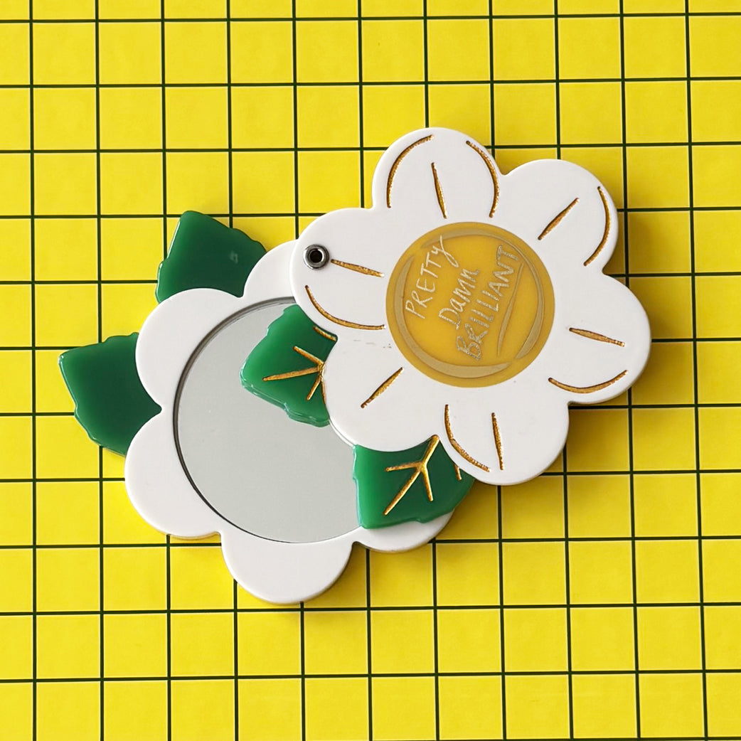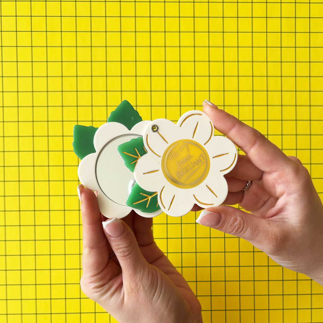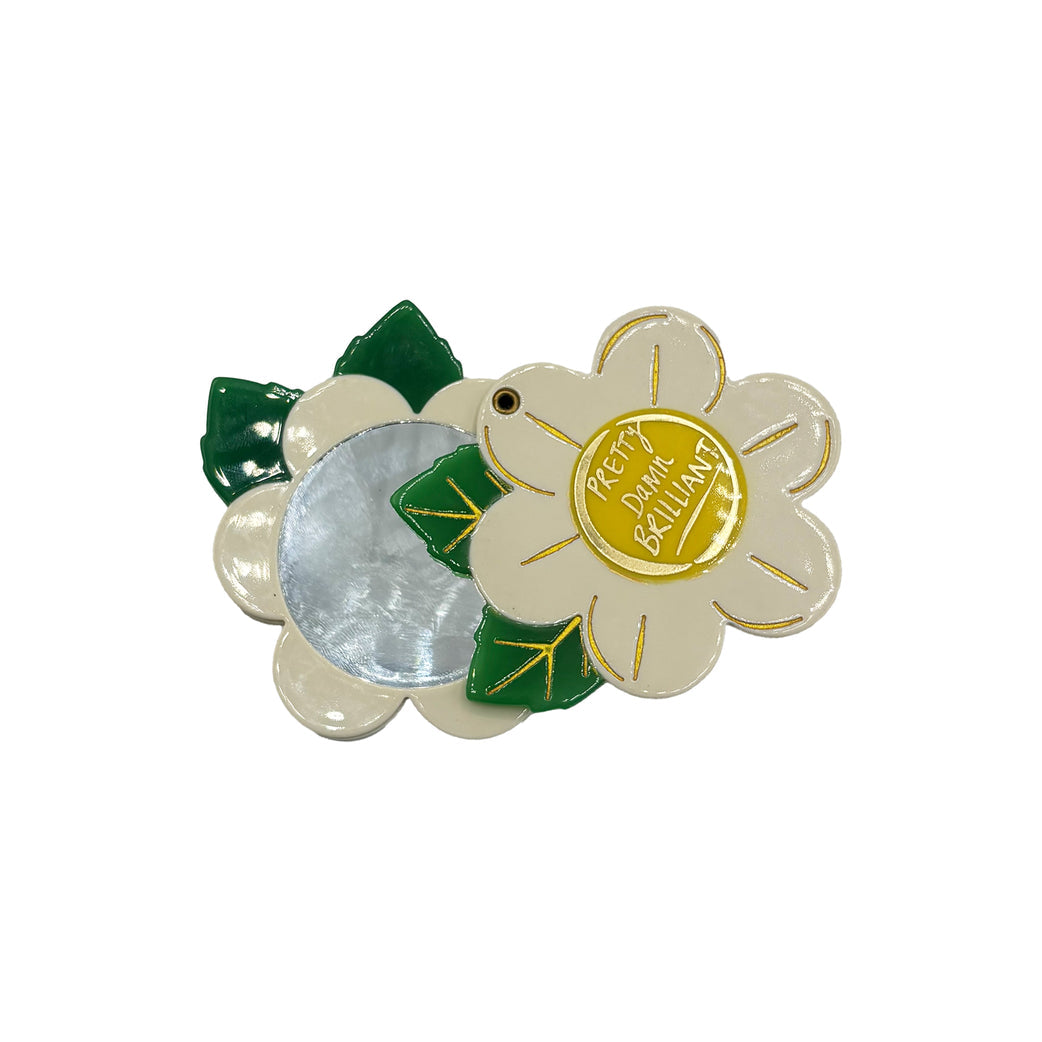 Denne kompakte speilfavoritten i akryl er pyntet med flower power og attitude. Den er både supersøt og superpraktisk – perfekt for raske touch-ups på farten. Sleng den i veska, og la den minne deg på hvor strålende du er, selv på de mest hektiske dagene.