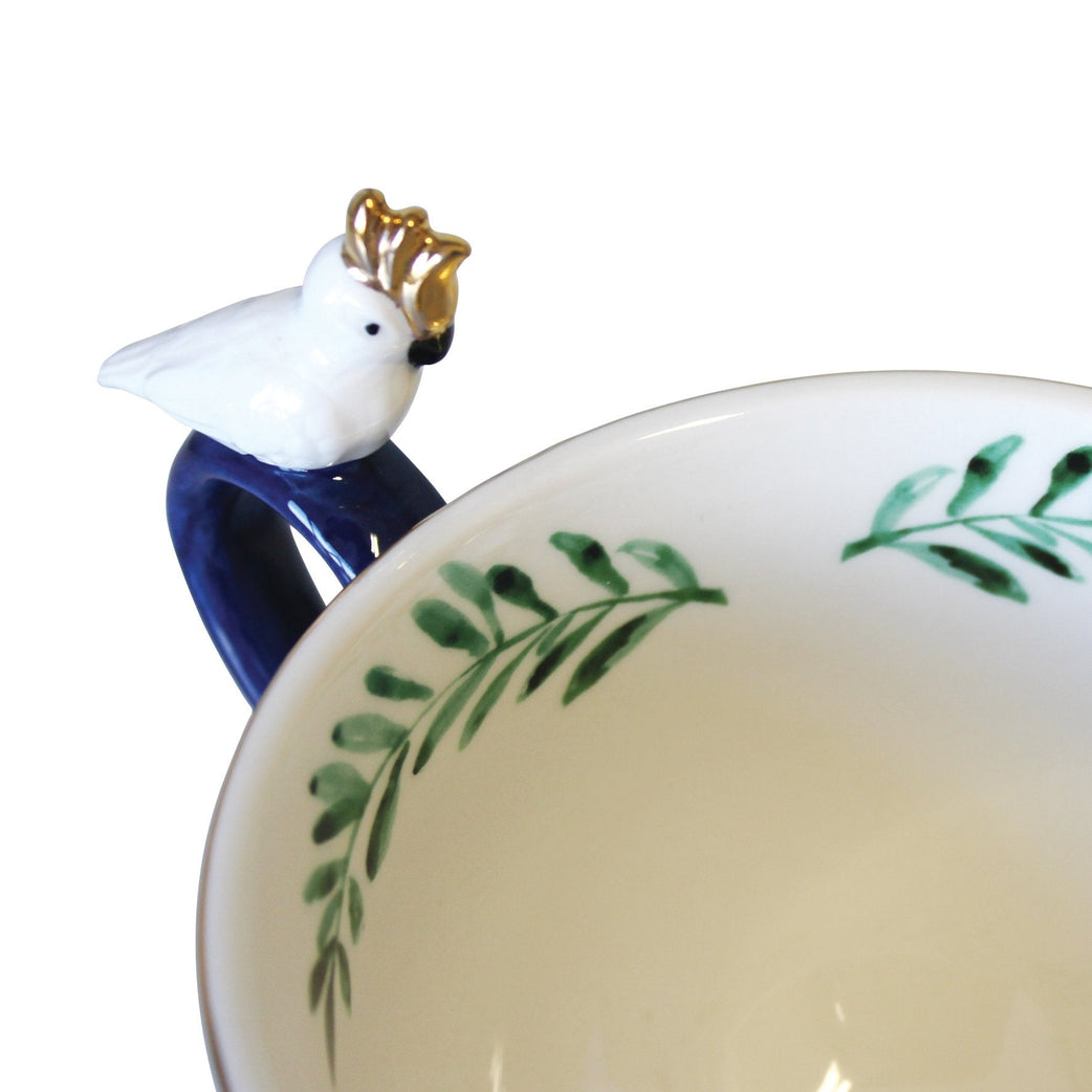 Denne eksklusive porselenskoppen er en hyllest til Frida Kahlo og hennes fargerike univers. Med et tropisk design, Fridas signatur i gull og en gullfarget parakitt som pryder håndtaket, blir hver kaffepause en liten reise til jungelen – med kunstnerisk vri.