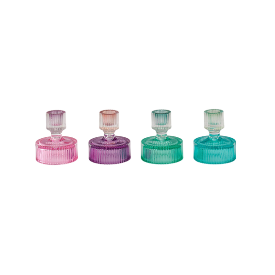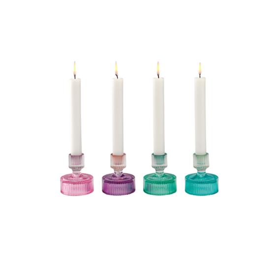 Fire små, flutede lysestaker i lekre farger – ideelle for å skape stemning.