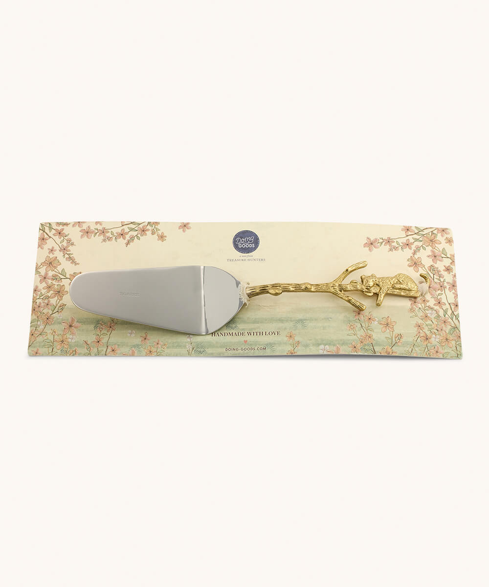 Server kaken med denne herlige kakeskjeen i rustfritt stÄl med messingdetaljer.