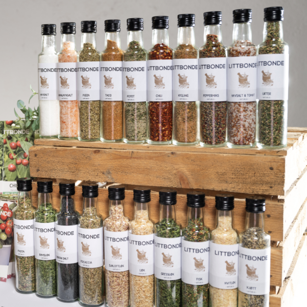 Alle krydder fra LITTBONDE® er håndpakket i Norge 🇳🇴 og laget av kun naturlige råvarer – helt uten kunstige tilsetningsstoffer. Flaskene er ikke bare praktiske, men også estetisk vakre, designet med et tidløst uttrykk som gjør at de passer like godt på kjøkkenbenken som i krydderhyllen. Når du velger LITTBONDE®, får du mer enn bare krydder – du blir en del av en livsstil som hyller dyrkeglede, selvforsyning og norsk landbruk.
