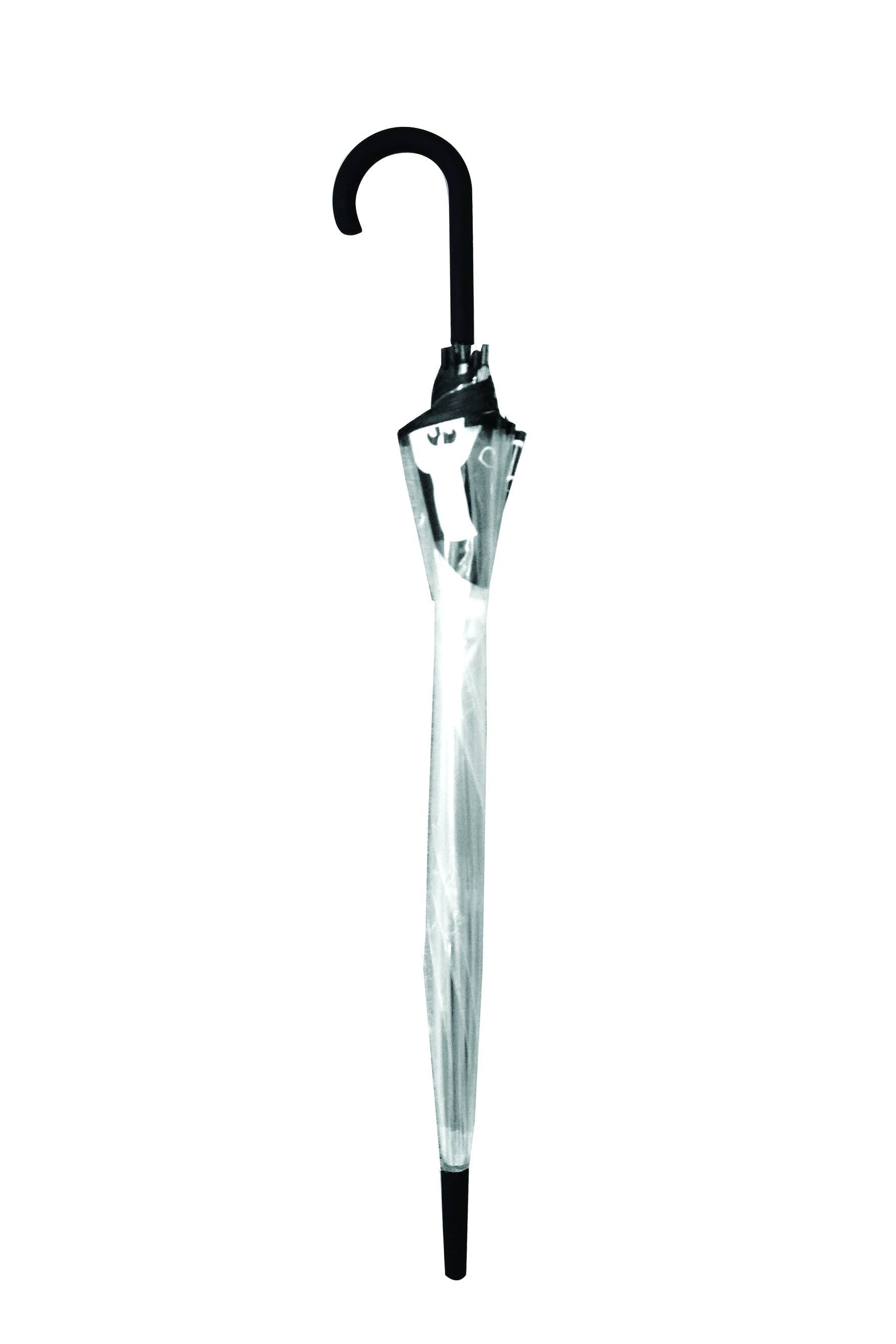 Den klokkeformede fasongen er ikke bare trendy – siden paraplyen er gjennomsiktig, kan du dekke deg helt opp til skuldrene for ekstra beskyttelse mot regnet. Klokkeformede paraplyer takler vind uten problemer og er svært vanskelige å vrenge.