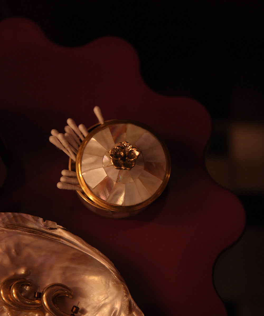 🌟 Strålende perlemordesign – den skimrende, off-white overflaten med messingdetaljer gir et sofistikert uttrykk