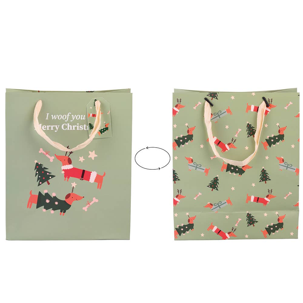 đ Julegavepose i papir med to polyesterhĂ„ndtak som tĂ„ler bĂ„de gaver og forventninger. Dekorert med dobbel juleillustrasjon som gir den akkurat nok âho ho hoâ til Ă„ gjĂžre seg under treet â eller pĂ„ vei dit.