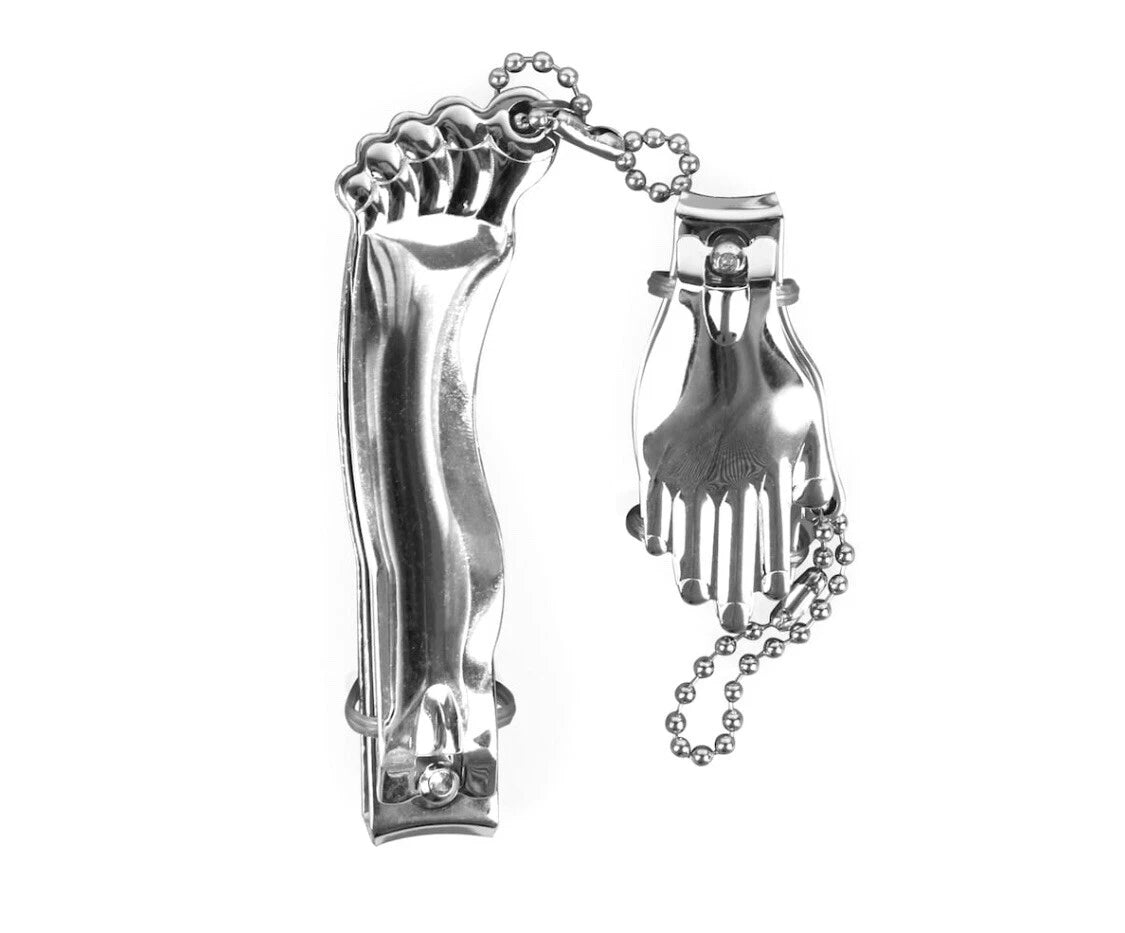 Glem kjedelige klippere â her kommer duoen som gir neglpleie et attitude-lĂžft. Kikkerlands Hand & Foot Clippers er ikke bare funksjonelle, de er formet som en hĂ„nd og en fot i glinsende krom. Jep, du leste riktig. En hĂ„nd. En fot. I metall. For neglene dine.
