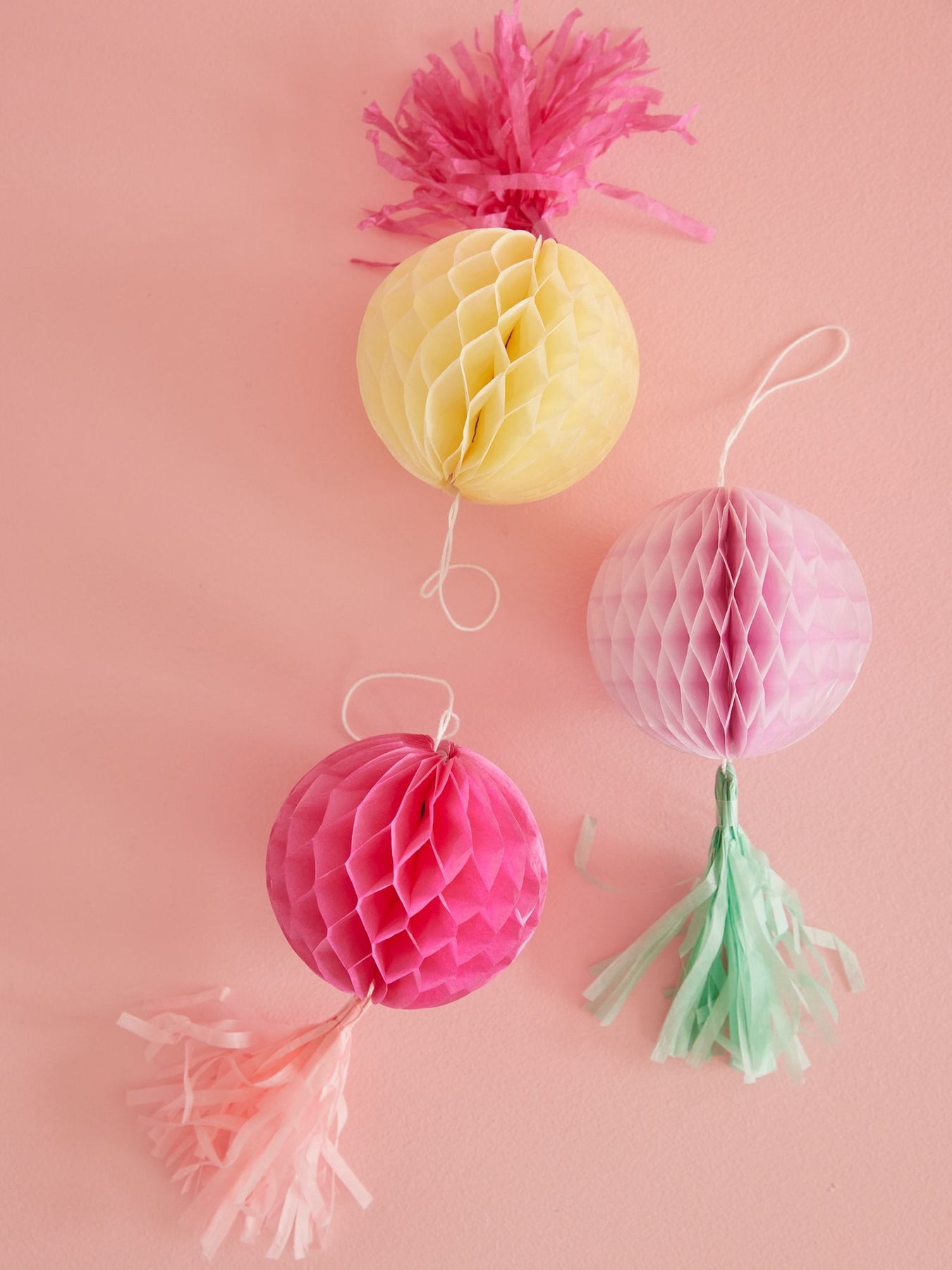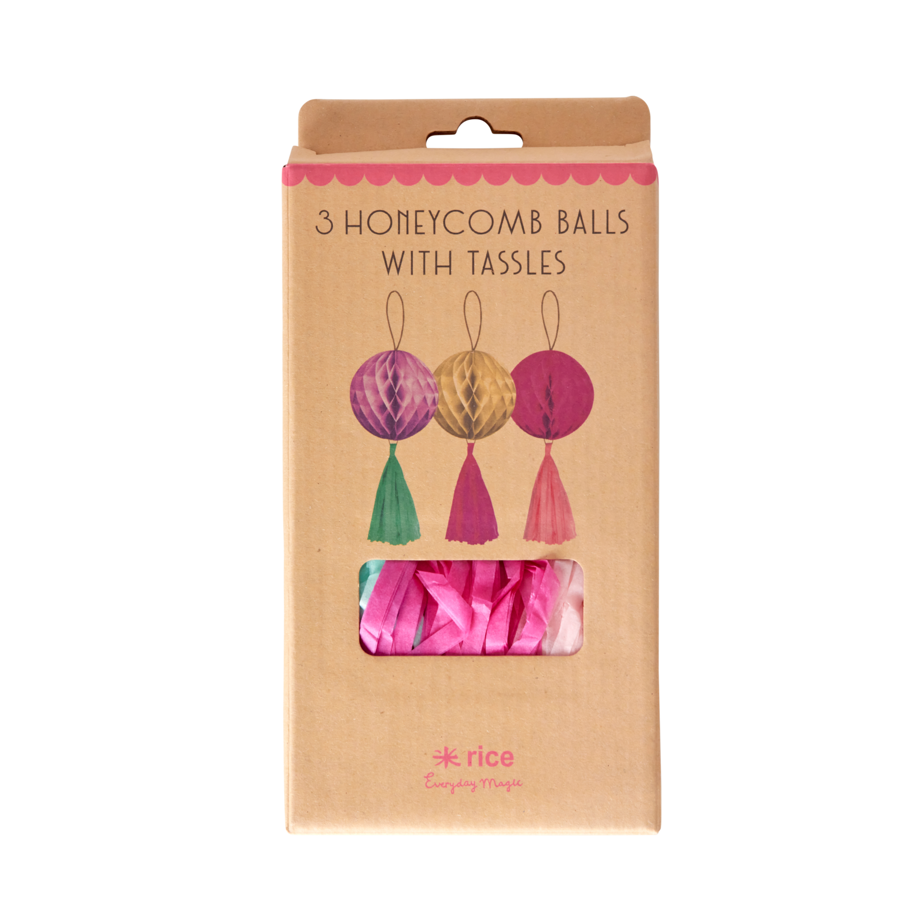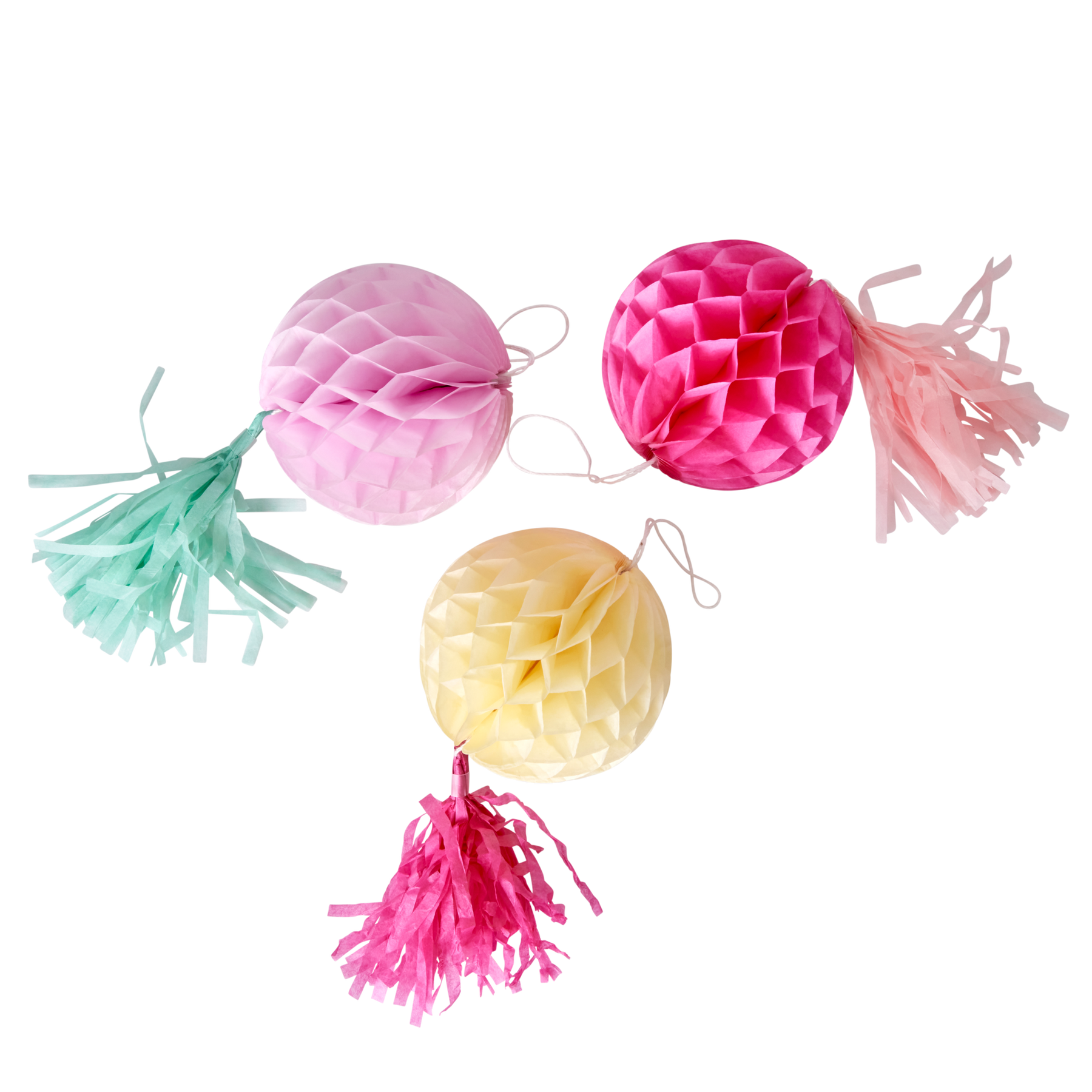 Leter du etter pynt til din neste fest? Da kan du bruke disse søte honeycomb-kulene med dusker. Disse vil garantert skape god stemning! Heng dem i trærne til hagefesten eller bruk dem til å dekorere stuen for en festlig atmosfære. Leveres i en pakke med 3 stk i forskjellige farger.
