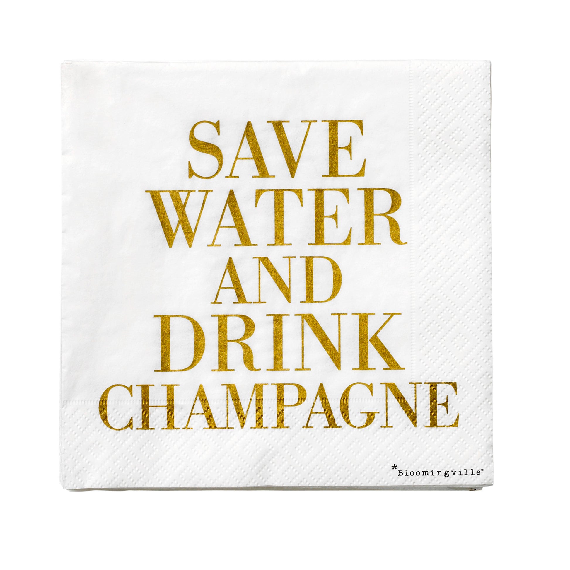 Spar vann og drikk champagne – det er det denne lille hvite servietten, Lolly fra Bloomingville, sier. De gylne bokstavene gjør servietten vakker og festlig – perfekt for enhver festlig anledning.