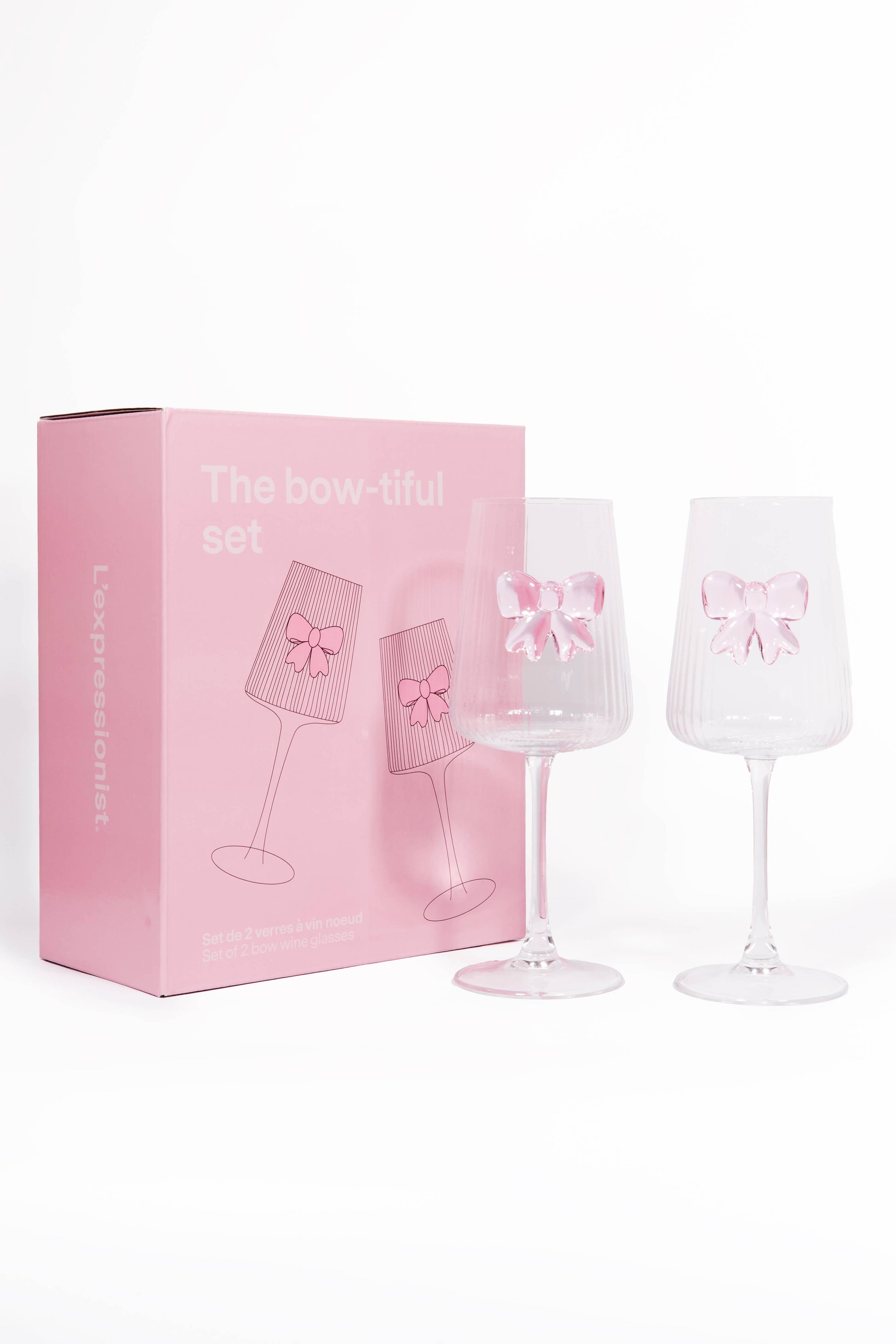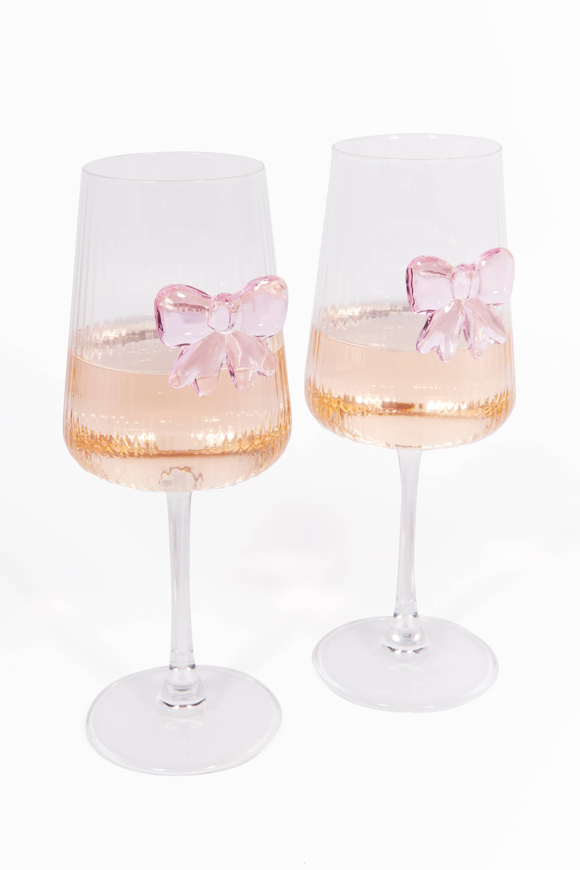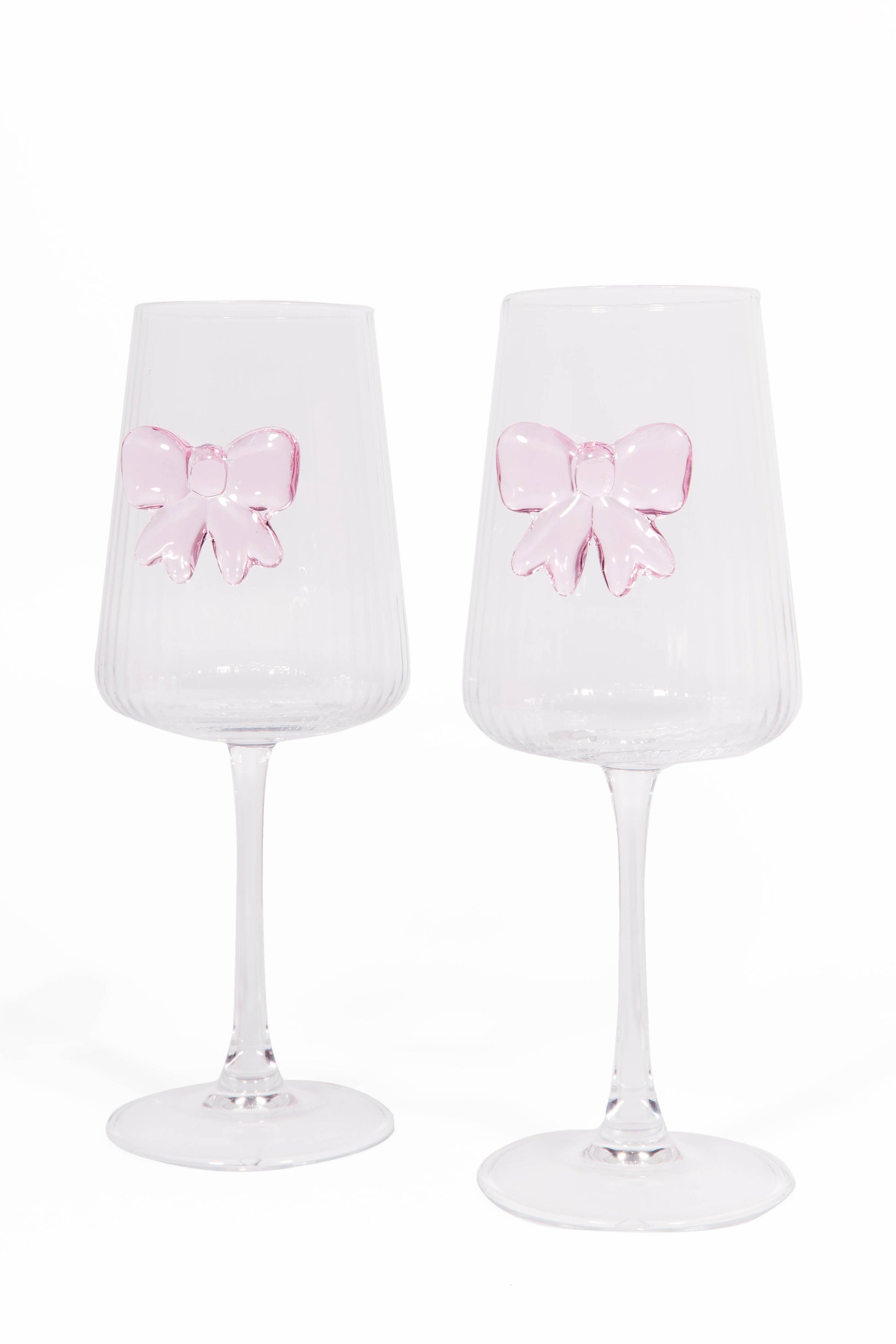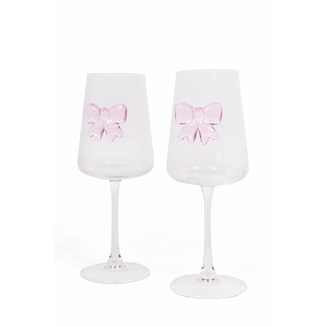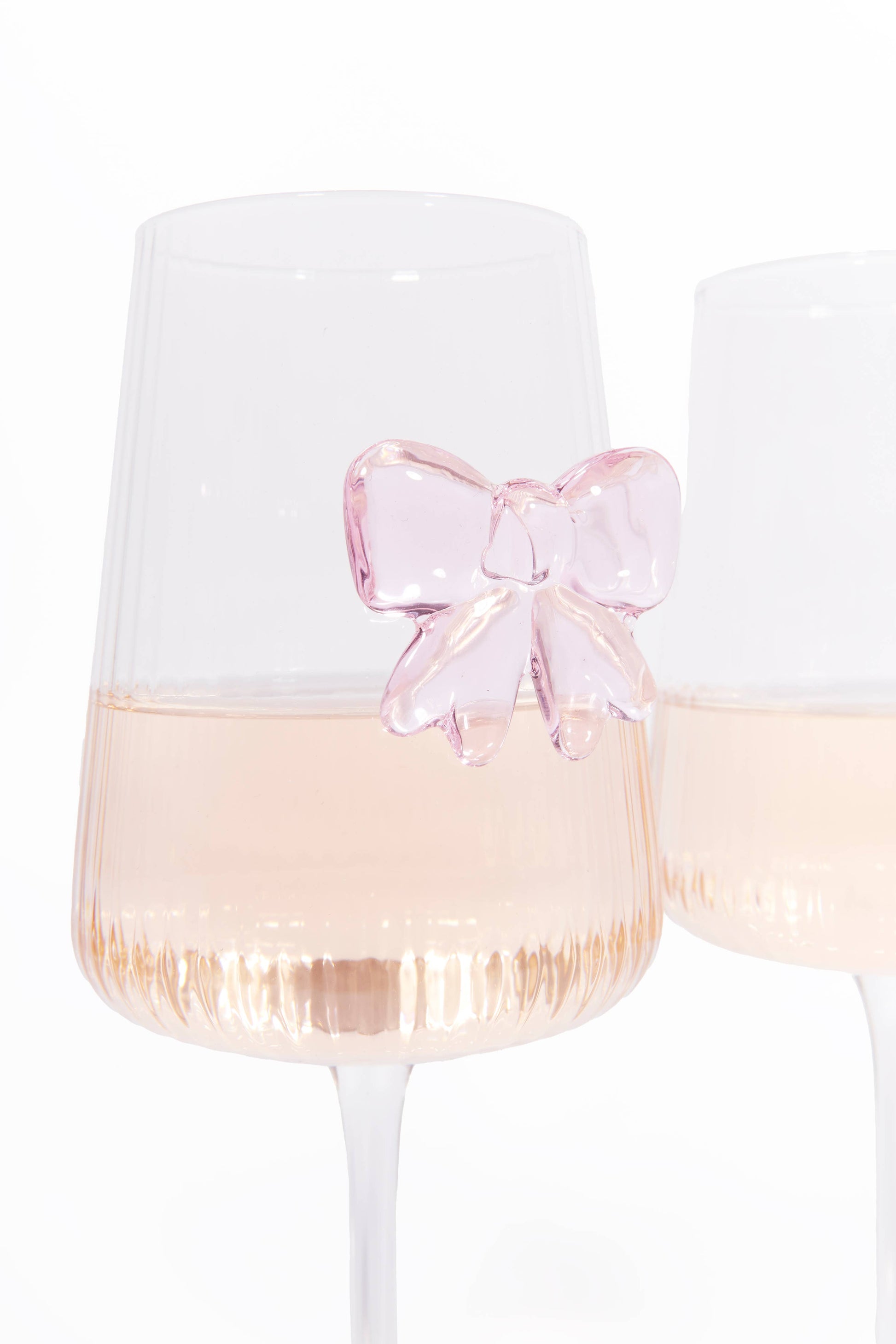 🎀 Gi vinsmakingen et løft med dette settet på to elegante vinglass, pyntet med en preget rosa sløyfe i glass. Designet kombinerer stramme linjer med subtil romantikk – perfekt for sofistikerte kvelder eller som en gave med ekstra sjarm.