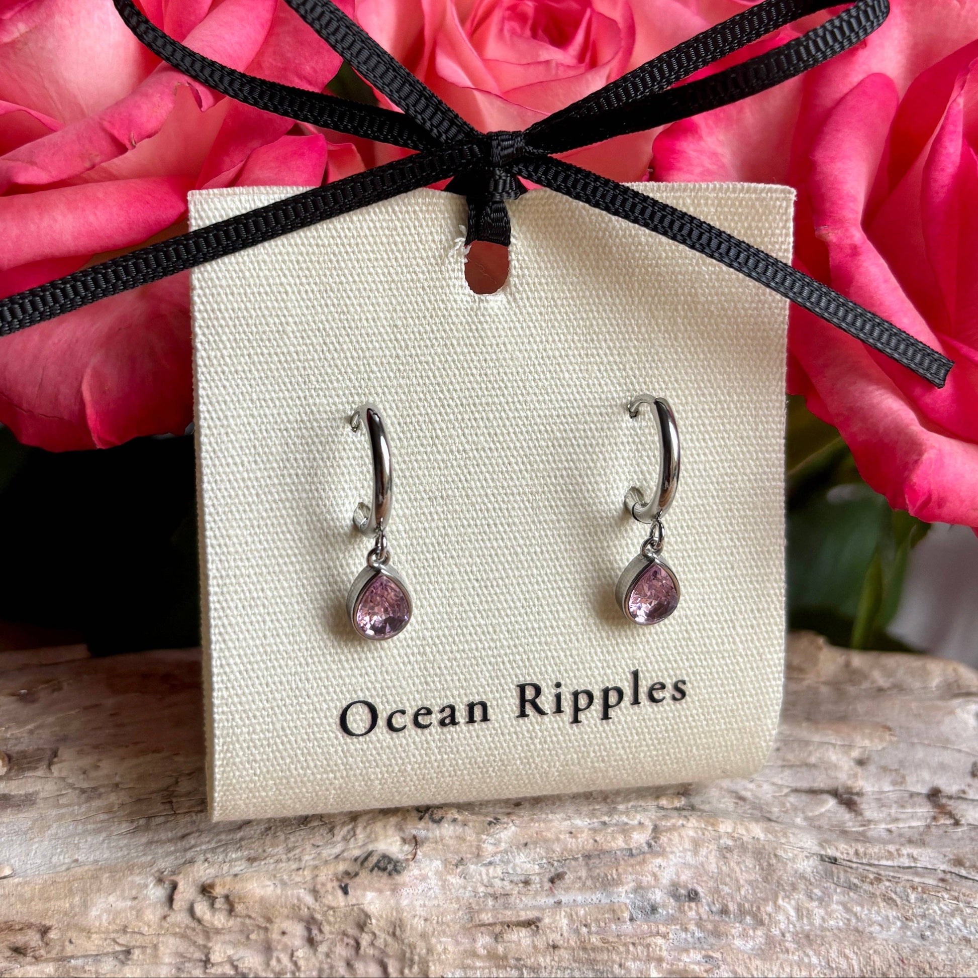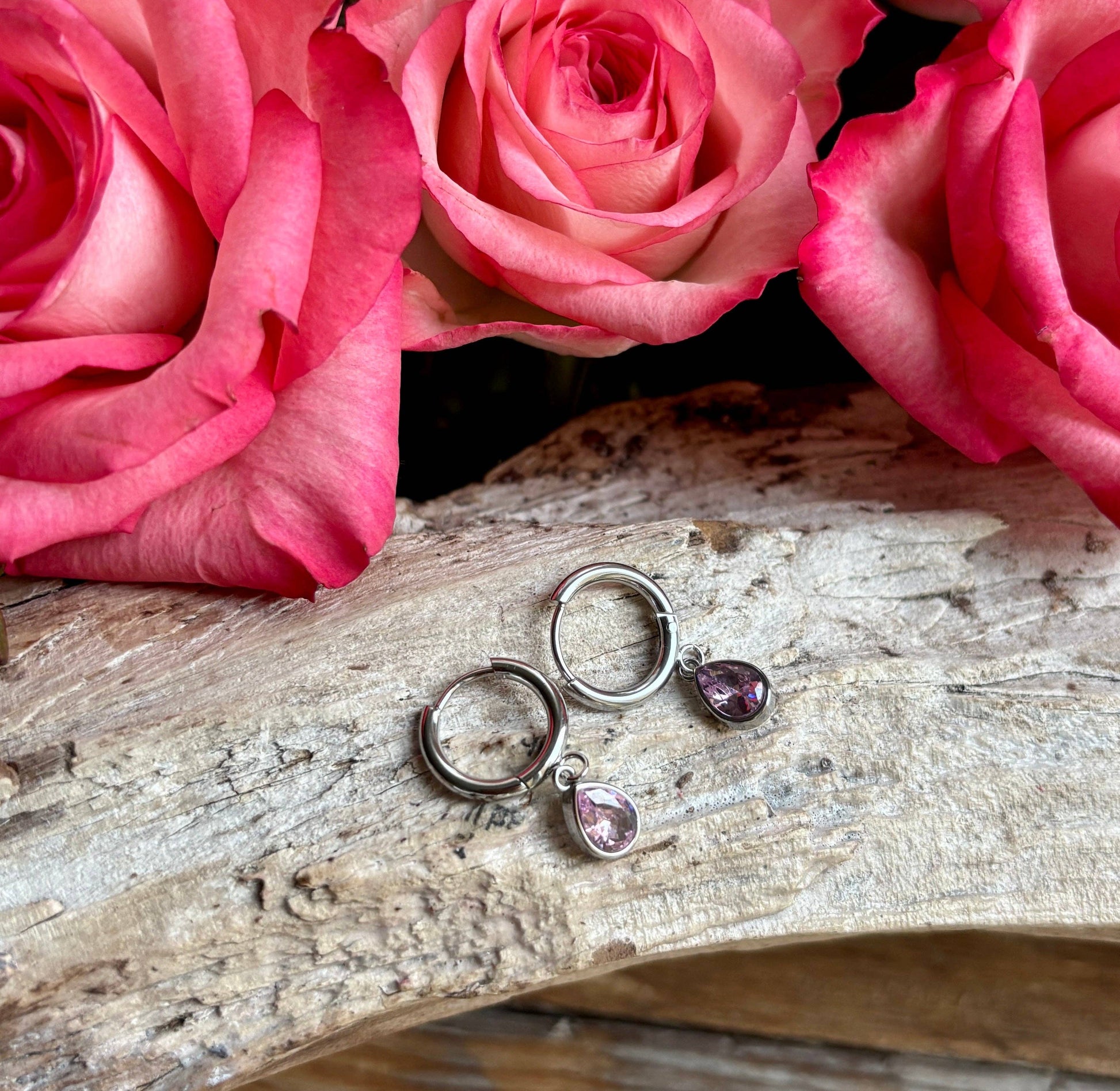 Disse sølvfargede huggie‑øredobbene med rosa Cubic Zirconia‑dråpe er små, delikate showstoppere som gir antrekket ditt akkurat den lille pop of colour du ikke visste du trengte 💖 Perfekte til både hverdagsglød og kveldsblikk, og like lekne som de er elegante.