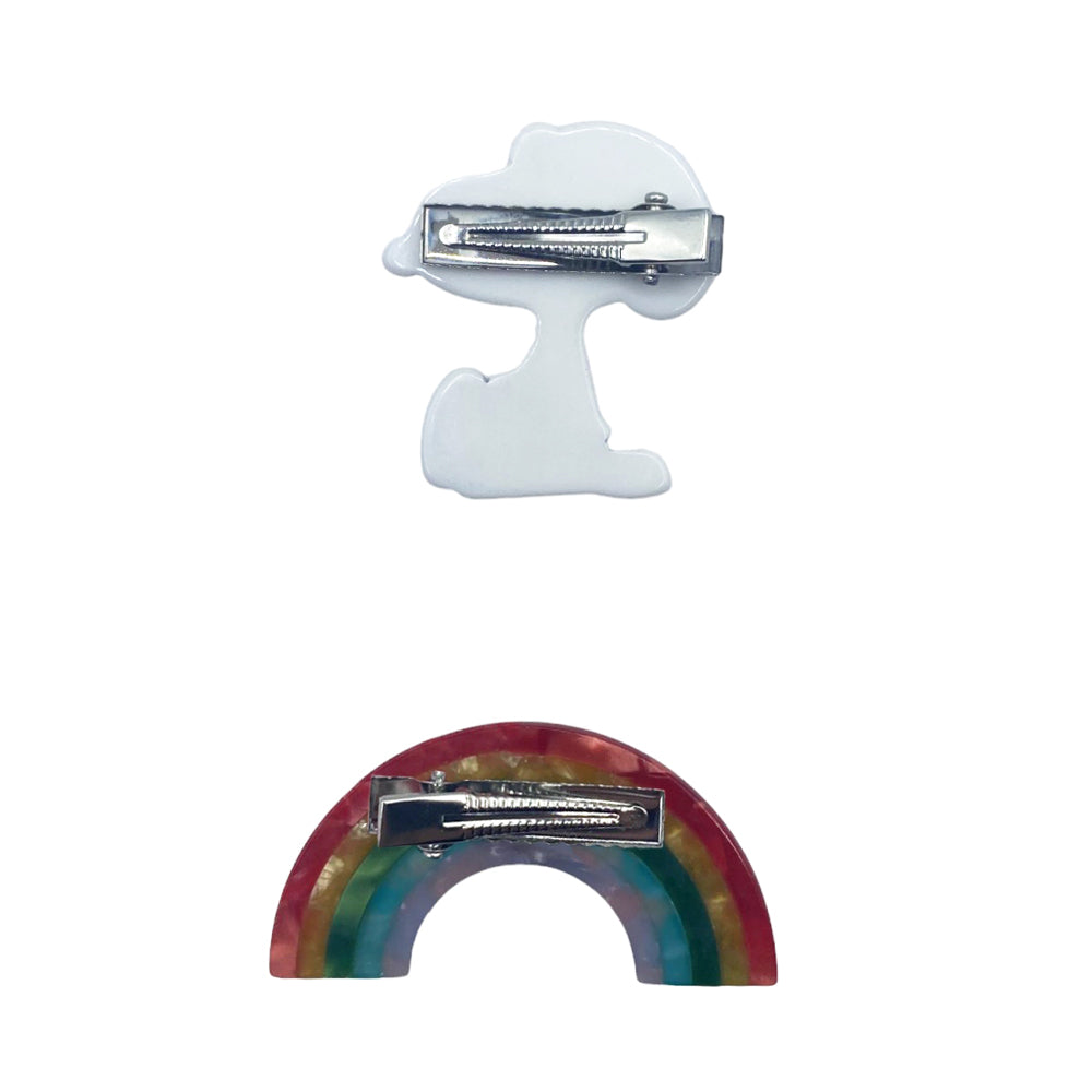 Gi hverdagslooken din et lekent løft med disse herlige Snoopy-hårklipsene. Med chunky acetatdesign og farger som minner om klasseromsvegger fra barndommen, er dette et sett som både skiller seg ut og vekker nostalgien. Settet består av to ulike klips – én med søte Snoopy og én med en retro regnbue – perfekt for deg som liker å mikse og matche med stil.