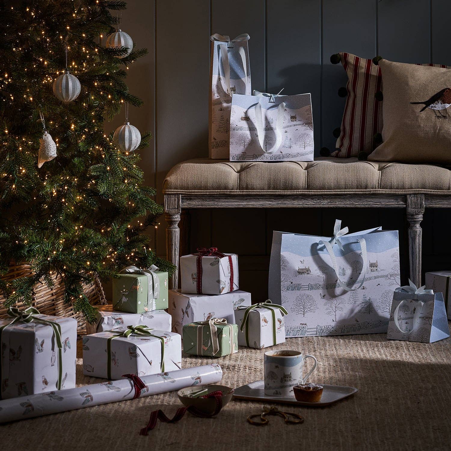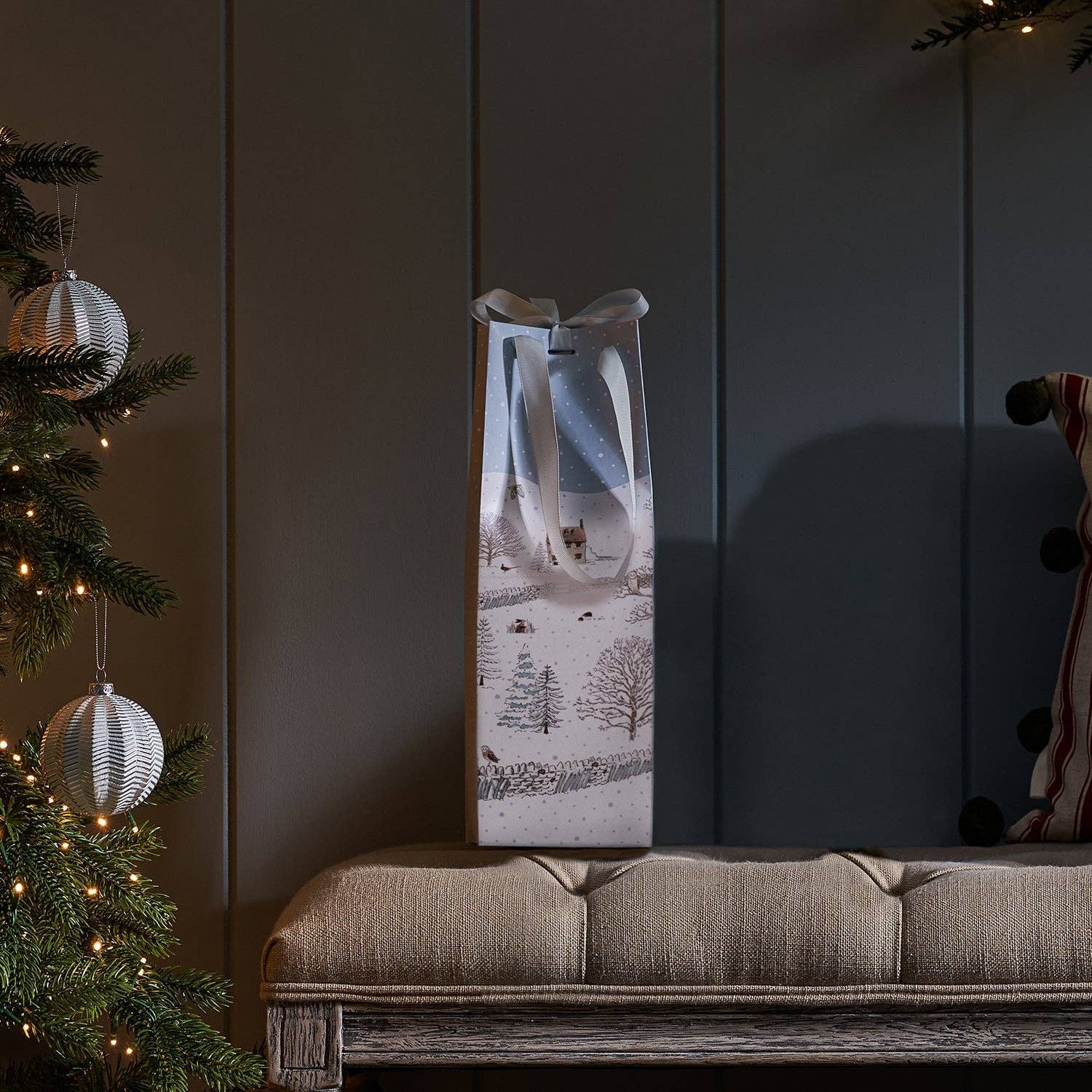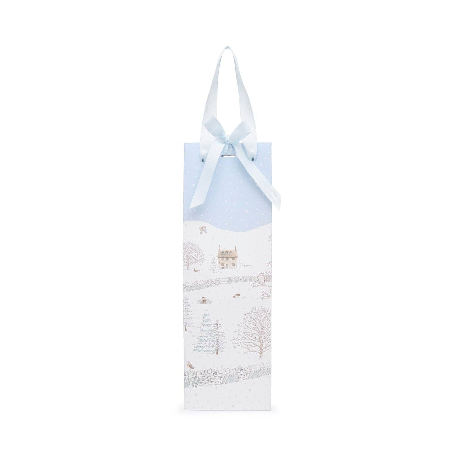 Gi bort vin eller bobler med stil denne julen! Denne flaskeposen med Sophies "Snowy Cottage"-motiv er pyntet med delikate illustrasjoner av søte dyr som kommer ut for å leke når kvelden faller på. Et fredelig og mykt design som ser nydelig ut under ethvert juletre.