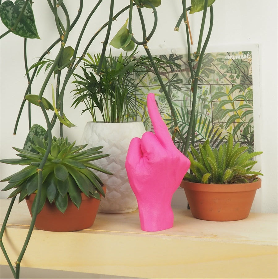 - Skulptural statement: Dette iøynefallende stykket er ikke bare kunst – det er en finger (vel, du vet hvilken) på den mest stilige måten som mulig, gir en opprørsk touch til hjemmeinnredningen din.