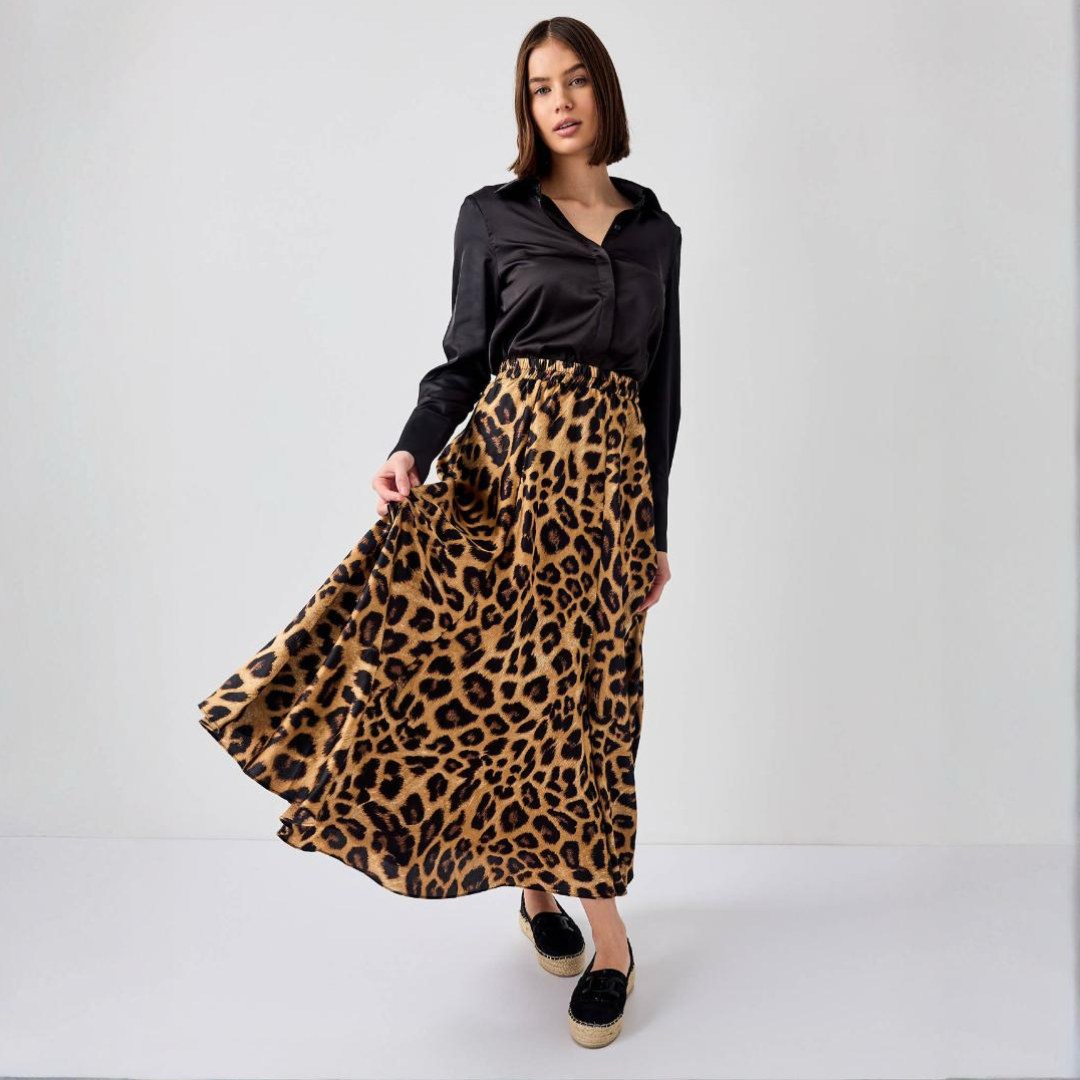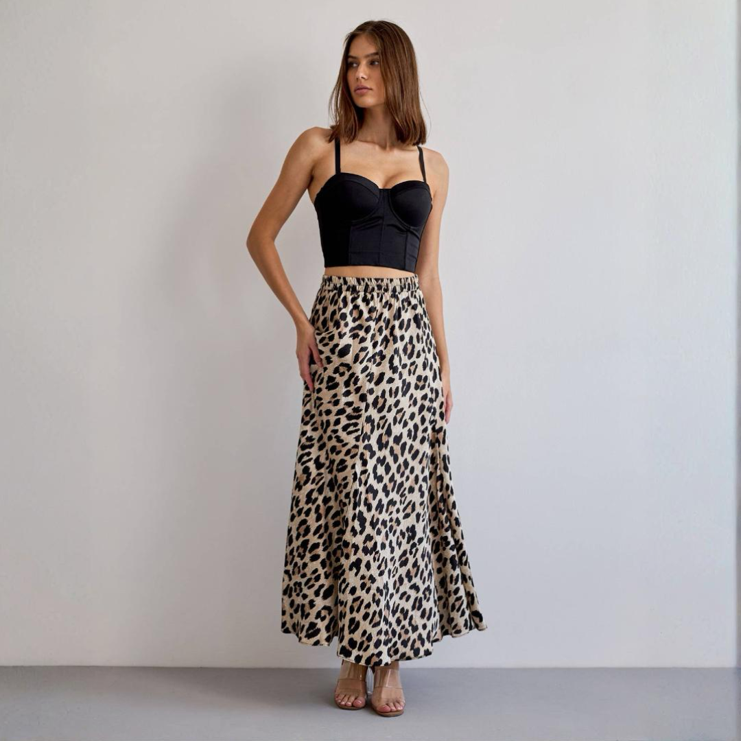 Langt silkemykt skjørt i polyester sateng