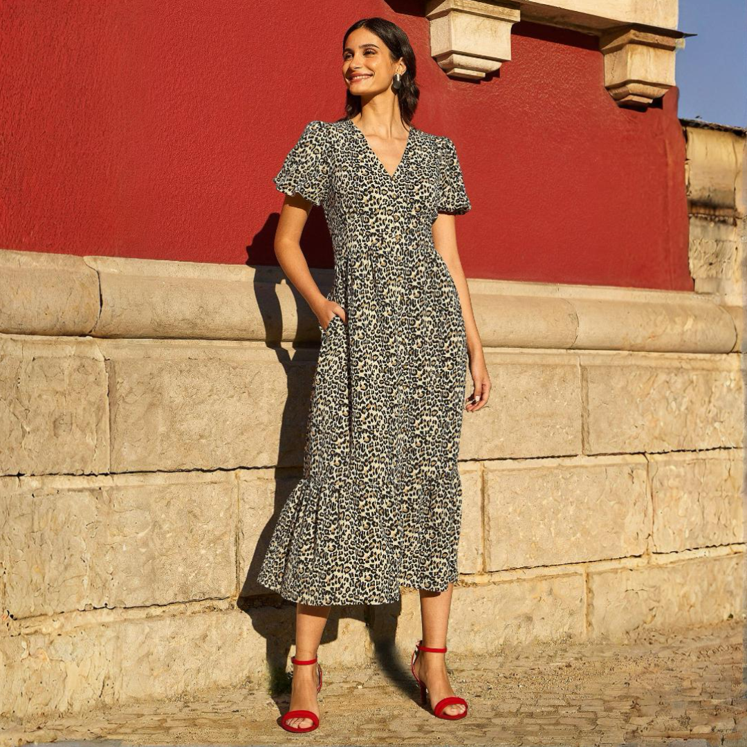 🐆 Safari Chic – Midikjole med Leopardmønster